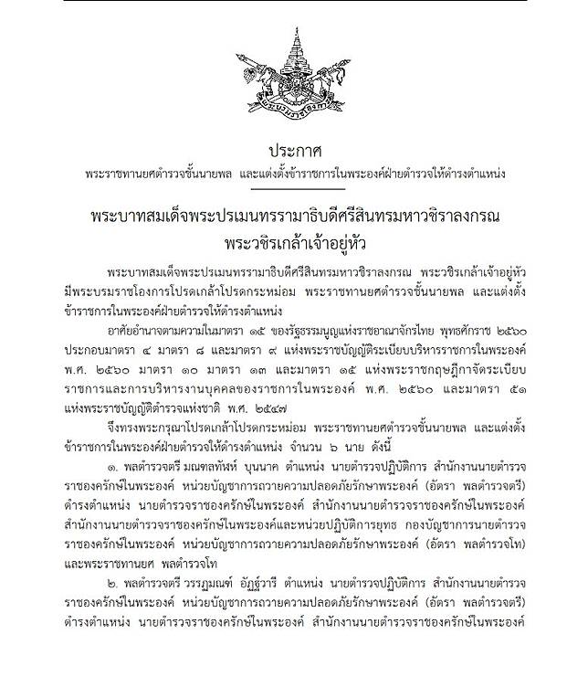 ตอนที่ ๑๕๕ ง พิเศษ (๑๒ กรกฎาคม พศ ราชกิจจานุเบกษา. ในหลวง รัชกาลที่ 10 โปรดเกล้าฯ แต่งตั้งข้าราชการในพระองค์และพระราชทานยศ;